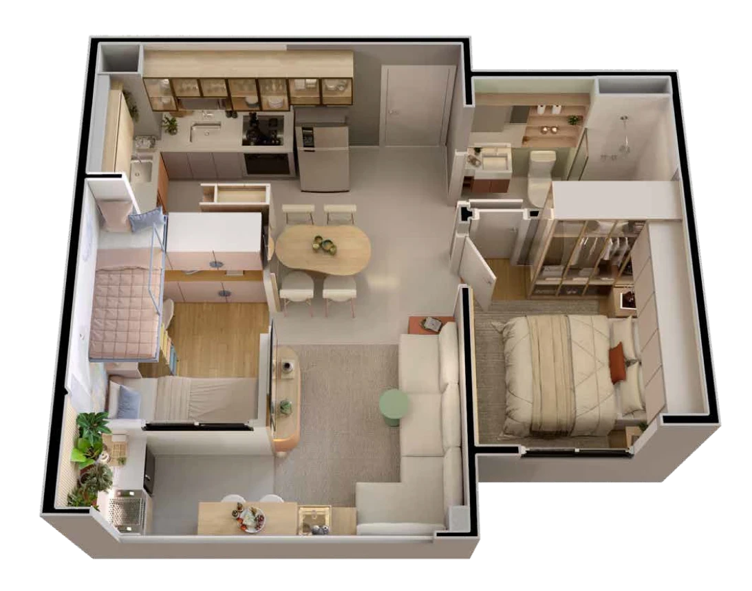 *Imagens meramente ilustrativas. Os empreendimentos serão entregues com os materiais de acabamento e especificações constantes no memorial de incorporação e projetos aprovados, os quais prevalecem sobre as concepções artísticas acima. Por se tratar de imóvel a ser construído, as características gerais poderão sofrer alteração sem aviso prévio. O paisagismo é meramente ilustrativo e não faz parte do projeto. Mobiliário meramente ilustrativo e não faz parte do projeto, salvo previsão específica no memorial de incorporação. Consulte o regulamento da promoção e as condições de participação da Black de Milhões, disponível em nosso site emccamp.com.br. Dúvidas e informações adicionais deverão ser consultadas através da nossa equipe de vendas por meio de nossos consultores ou via telefonema no 0800 200 7070. O pagamento do parcelamento do preço iniciará a partir de 2025, excetuando-se o pagamento da parcela de sinal. Para mais informações, consulte um corretor Emccamp.